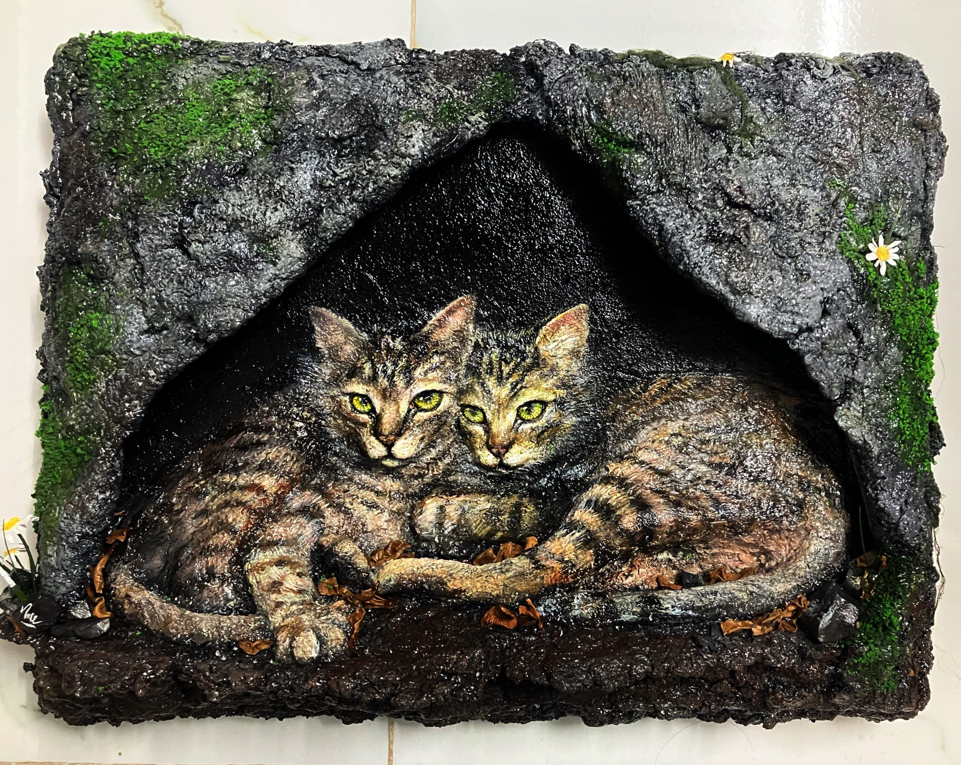 This collection of 3D mixed-media paintings blends sculpture, texture, and light to bring the natural world to life. Each piece tells a story of the deep connection between humanity and nature.